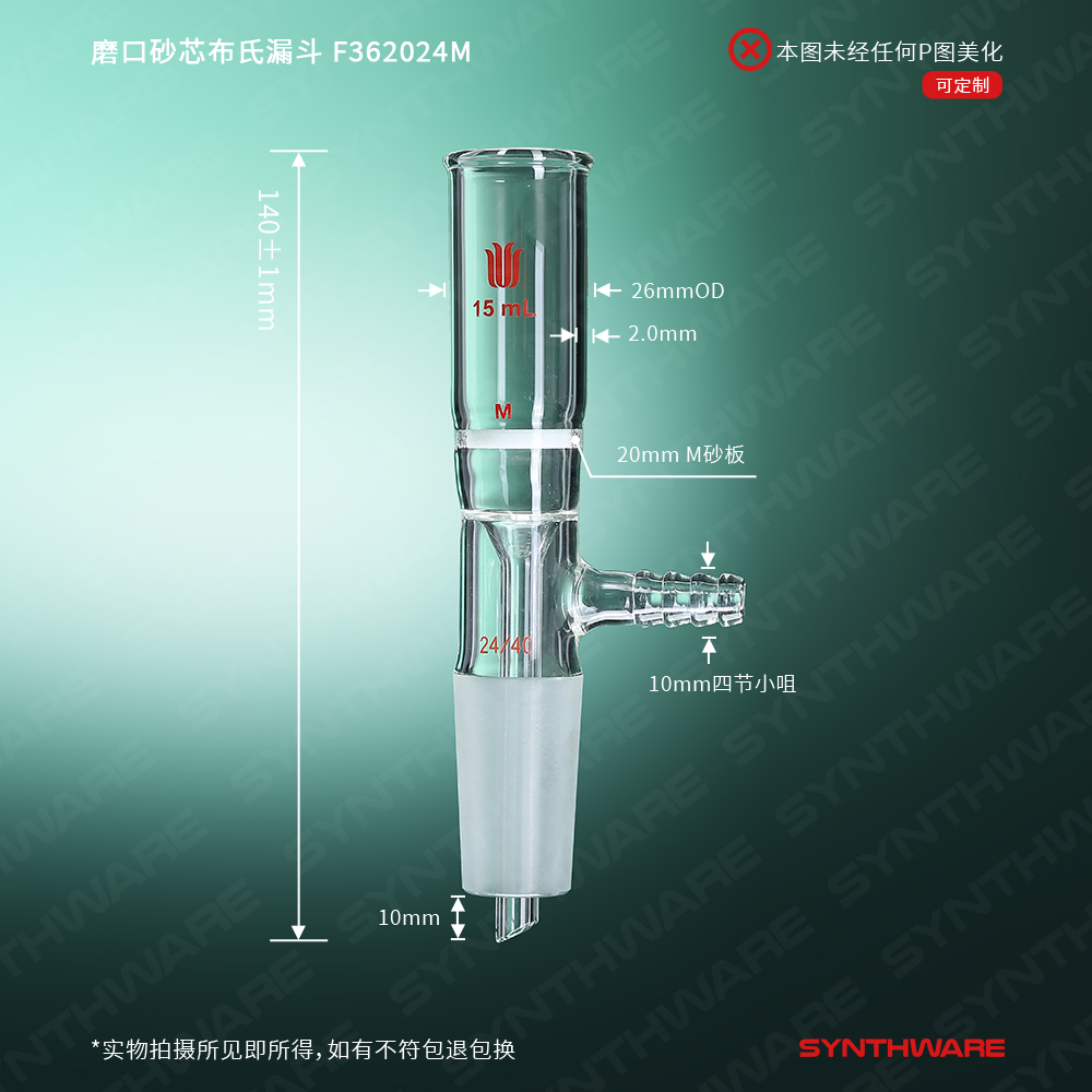 磨口砂芯布氏漏斗,15ml,24/40,砂芯孔隙规格:G3 F362024M