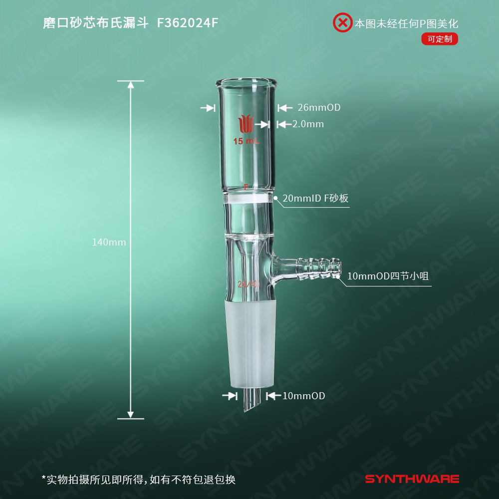 磨口砂芯布氏漏斗,15ml,24/40,砂芯孔隙规格:G4 F362024F