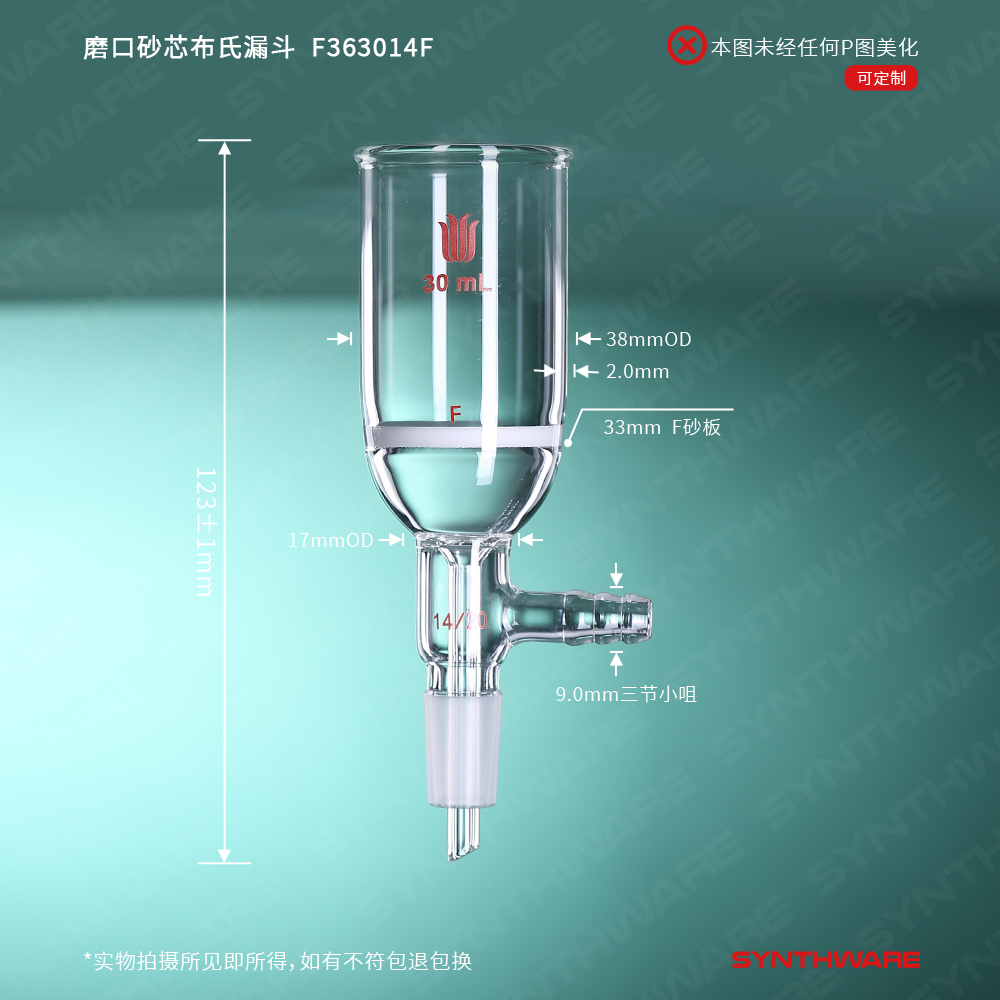磨口砂芯布氏漏斗,30ml,14/20,砂芯孔隙规格:G4 F363014F