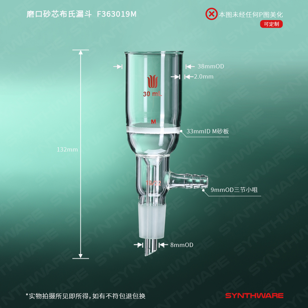 磨口砂芯布氏漏斗,30ml,19/22,砂芯孔隙规格:G3 F363019M