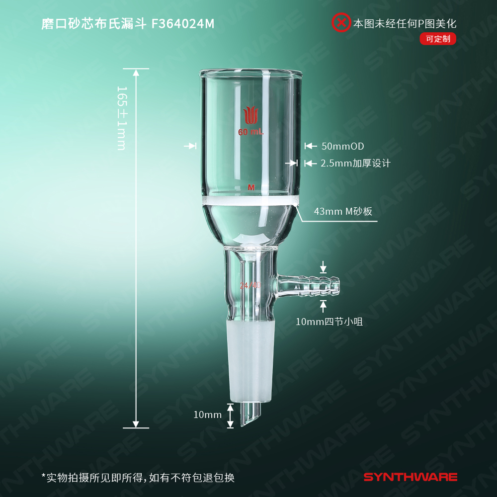 磨口砂芯布氏漏斗,60ml,24/40,砂芯孔隙规格:G3 F364024M