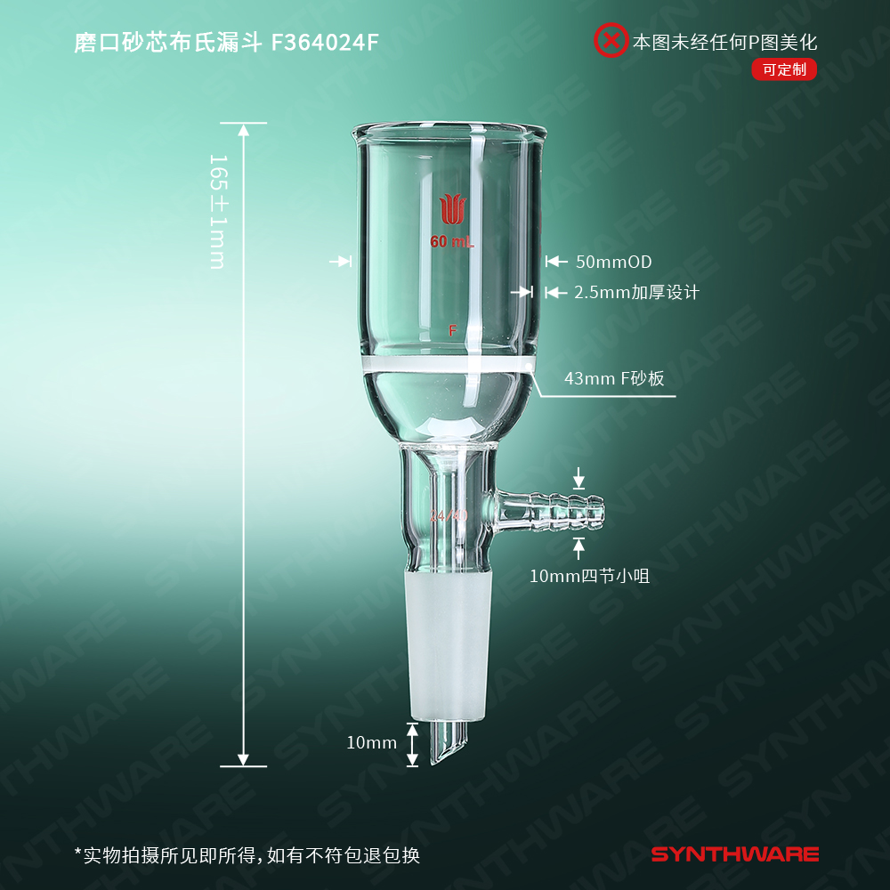 磨口砂芯布氏漏斗,60ml,24/40,砂芯孔隙规格:G2 F364024C
