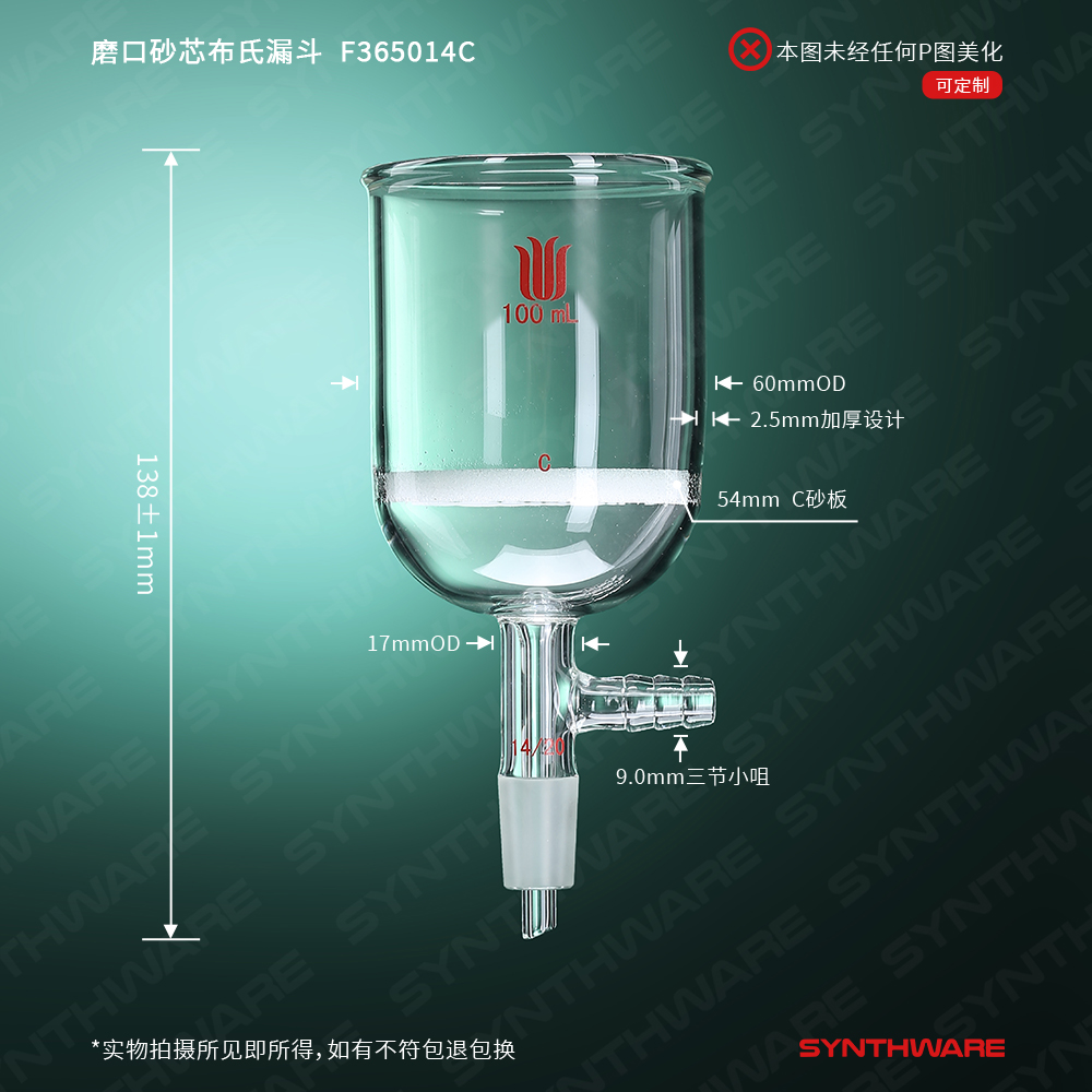 磨口砂芯布氏漏斗,100ml,14/20,砂芯孔隙规格:G2 F365014C
