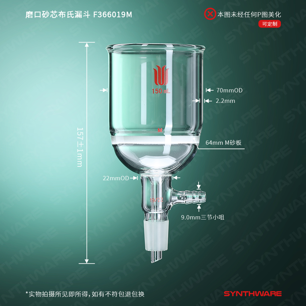 磨口砂芯布氏漏斗,150ml,19/22,砂芯孔隙规格:G3 F366019M
