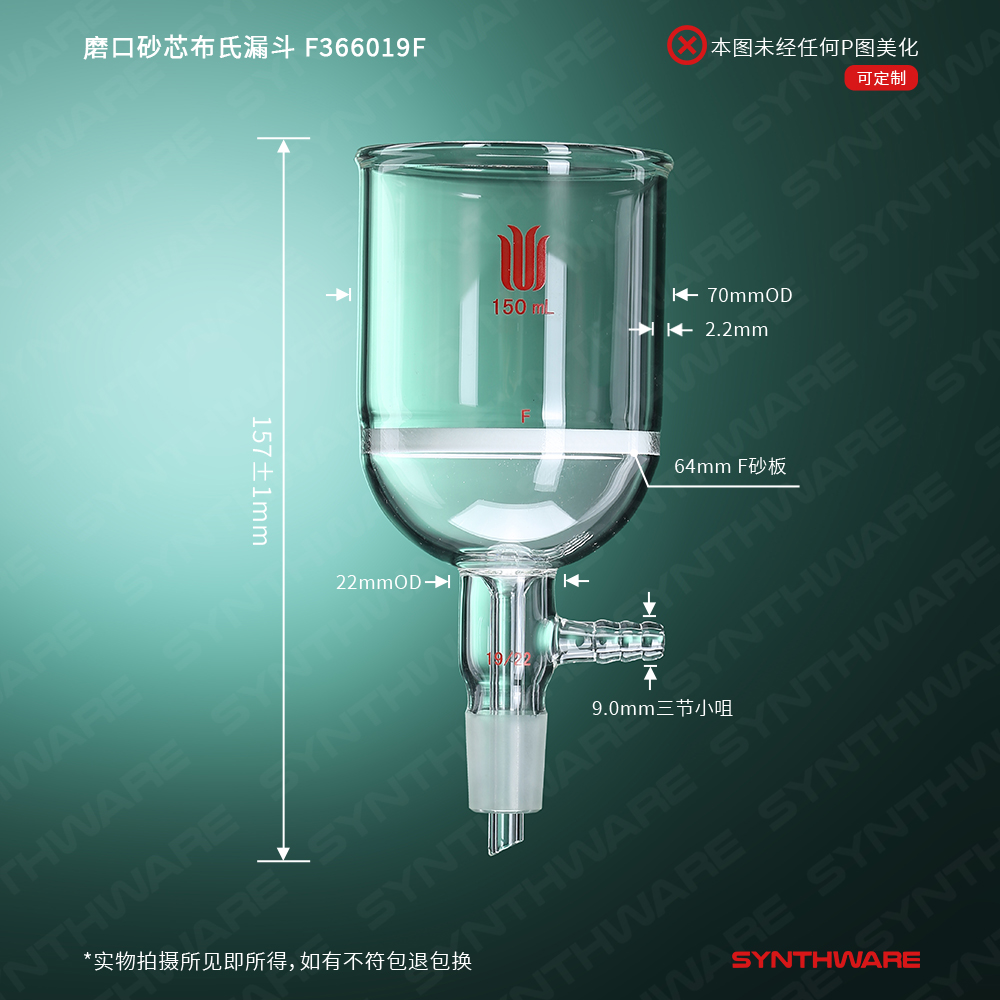 磨口砂芯布氏漏斗,150ml,19/22,砂芯孔隙规格:G4 F366019F