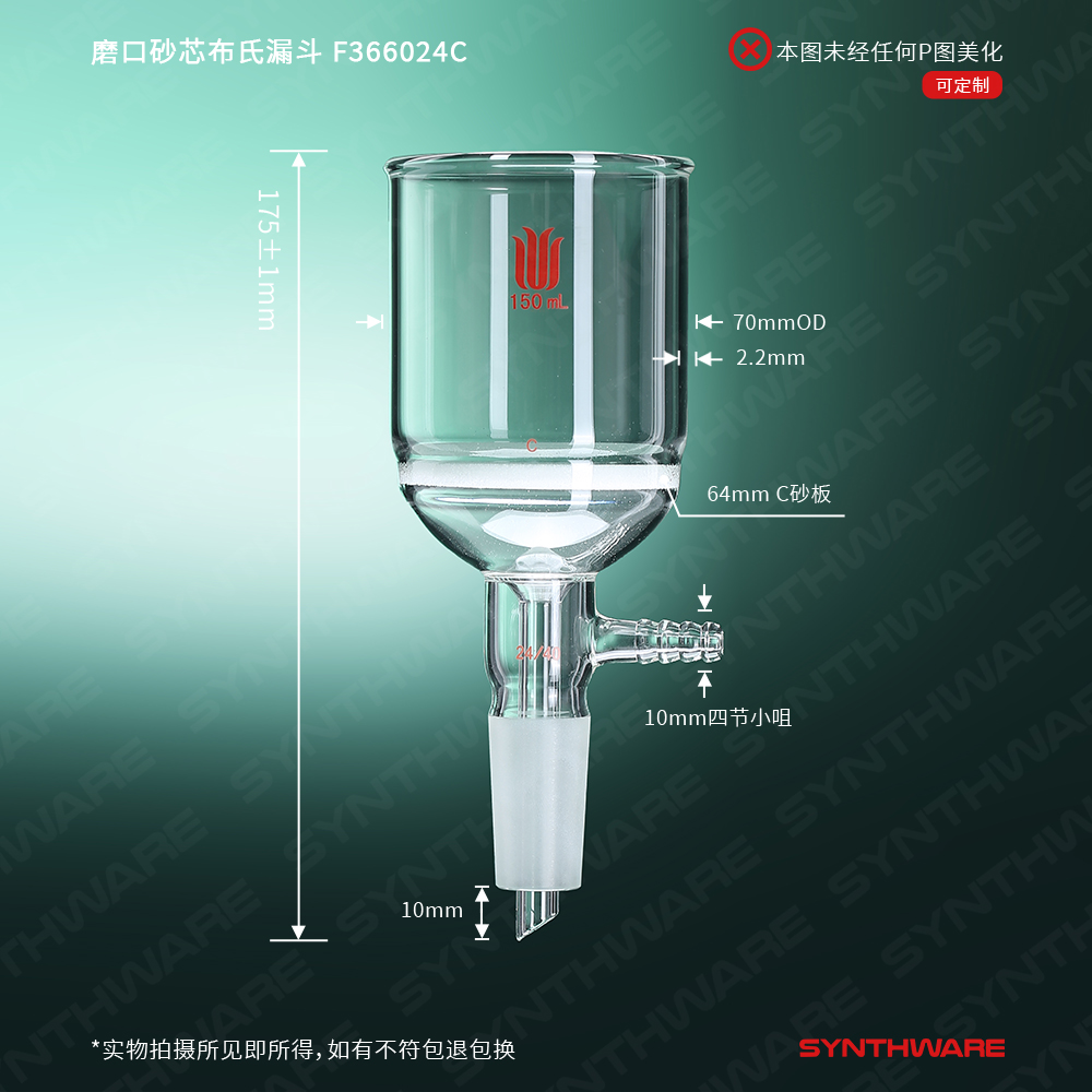 磨口砂芯布氏漏斗,150ml,24/40,砂芯孔隙规格:G2 F366024C
