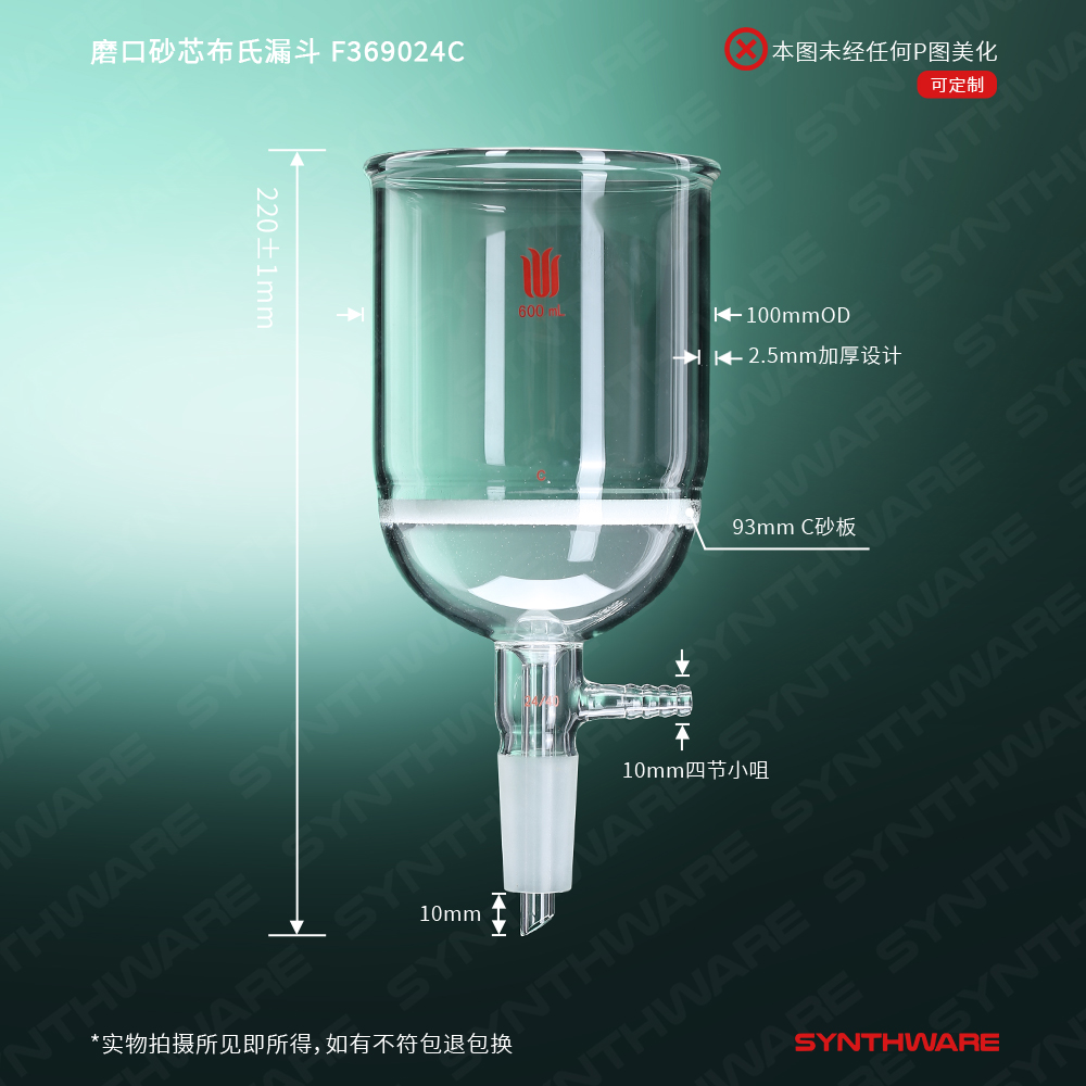 磨口砂芯布氏漏斗,600ml,24/40,砂芯孔隙规格:G2 F369024C