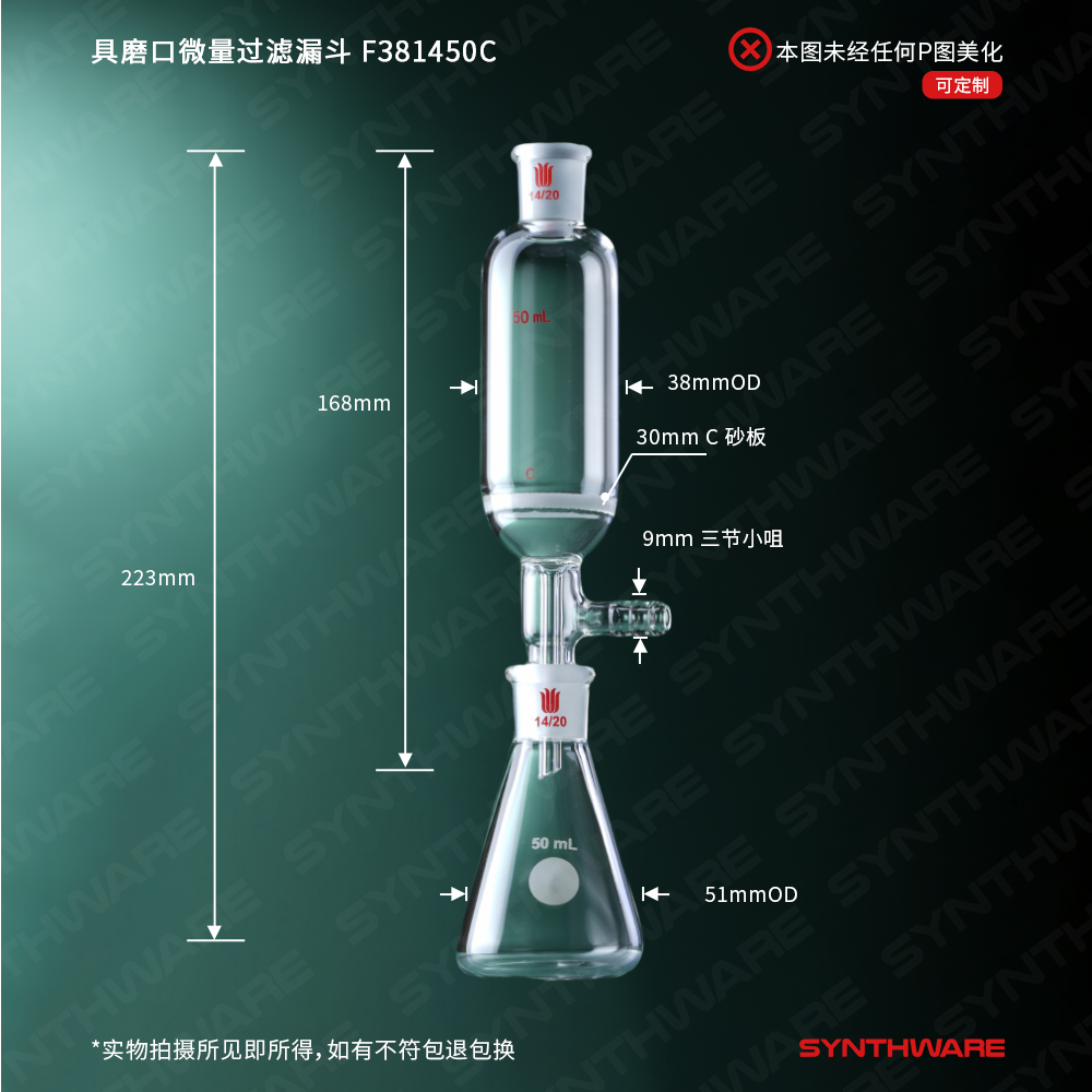 具磨口微量过滤漏斗,磨口:14/20,砂芯孔隙规格:G3 F381450M