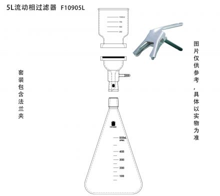 5L流动相过滤器/套(含5L法兰杯,G2砂芯过滤平台,法兰夹,1L厚壁三角瓶) F10905L