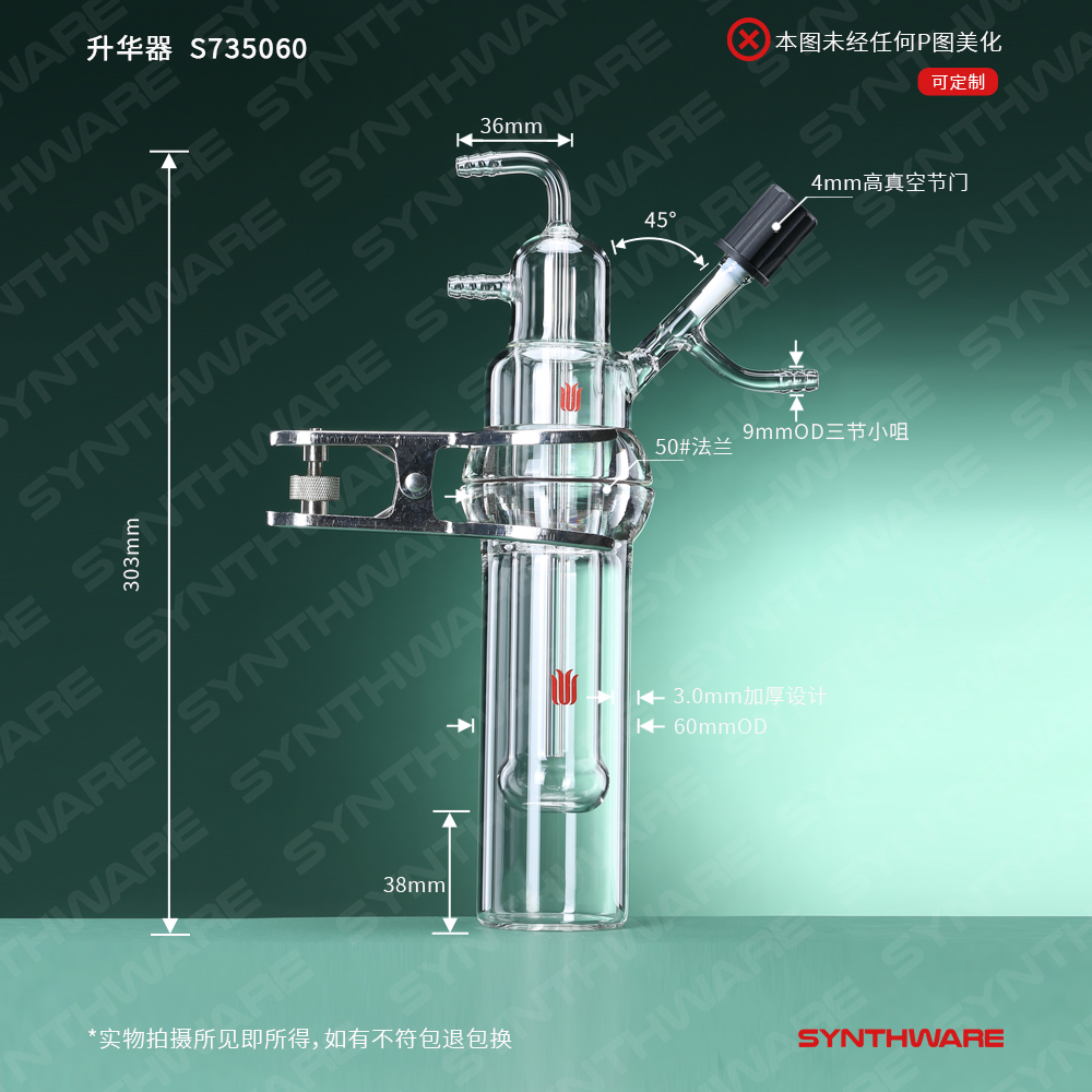 经由“O”型圈砝兰连接,使得两部分很容易分离,从而最大限度的提高产品的回收率。整套仪器由冷指冷凝器,