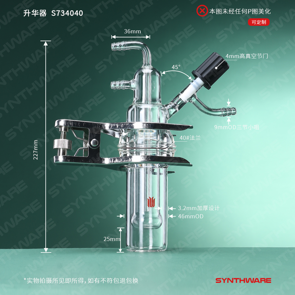 经由“O”型圈砝兰连接,使得两部分很容易分离,从而最大限度的提高产品的回收率。整套仪器由冷指冷凝器,