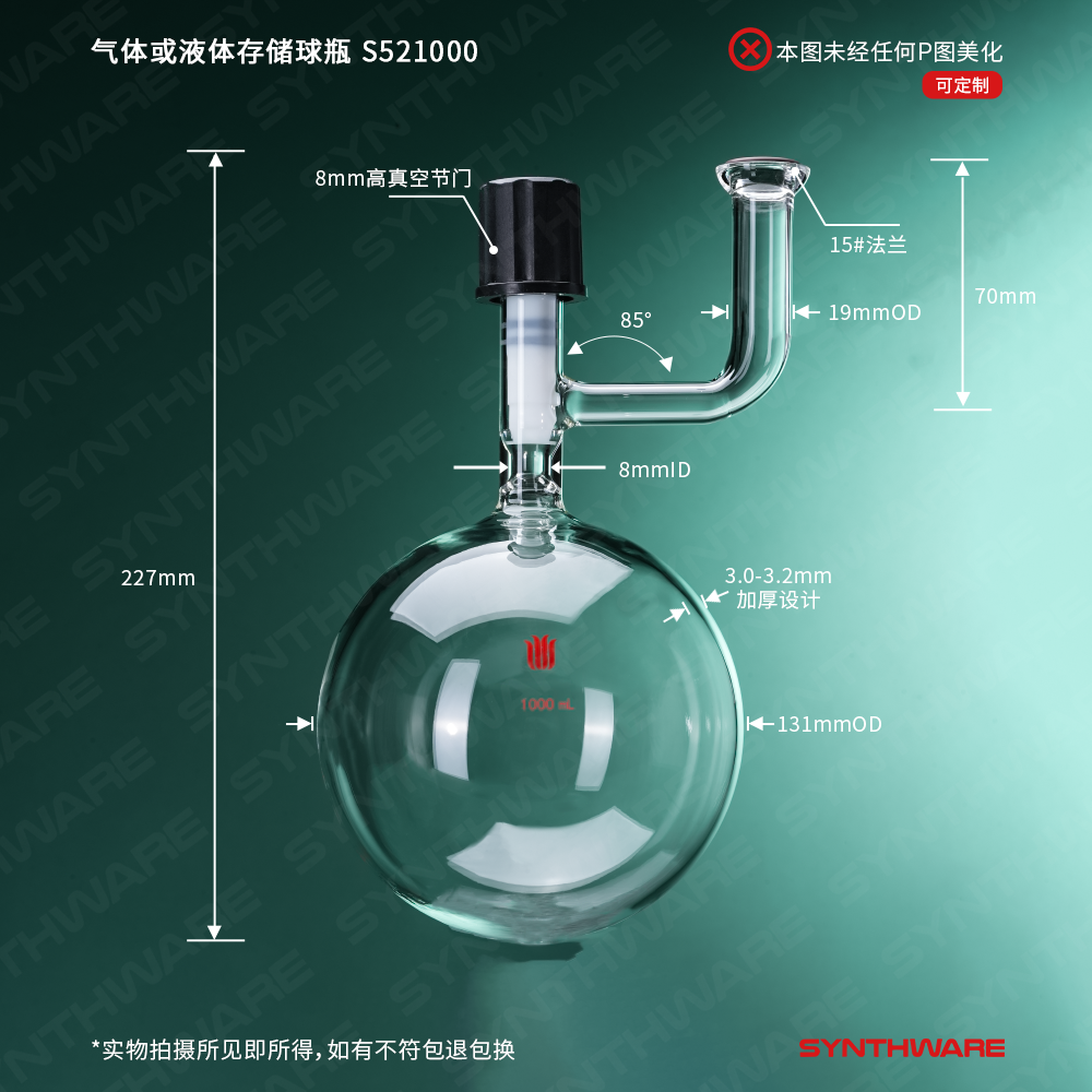 带高真空节门的溶剂存储瓶,可确保溶剂的密封性。高真空节门的特点:四氟全包裹的四氟节门,防化学腐蚀。