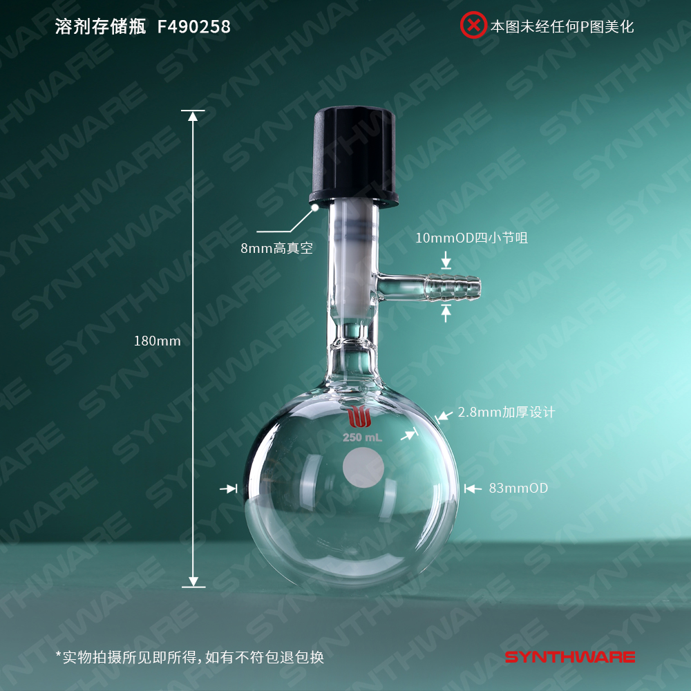 溶剂存储瓶 > 球型溶剂存储瓶 > 高真空节门-圆球溶剂存储瓶 > SYNTHWARE > 溶剂存储瓶,8mm高真空阀,250ml F490258