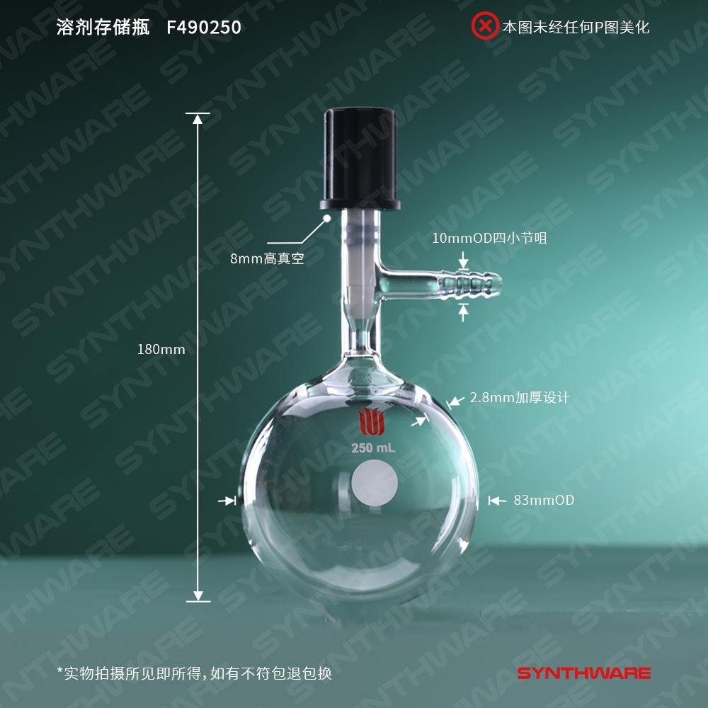溶剂存储瓶 > 球型溶剂存储瓶 > 高真空节门-圆球溶剂存储瓶 > SYNTHWARE > 溶剂存储瓶,4mm高真空阀,250ml F490250