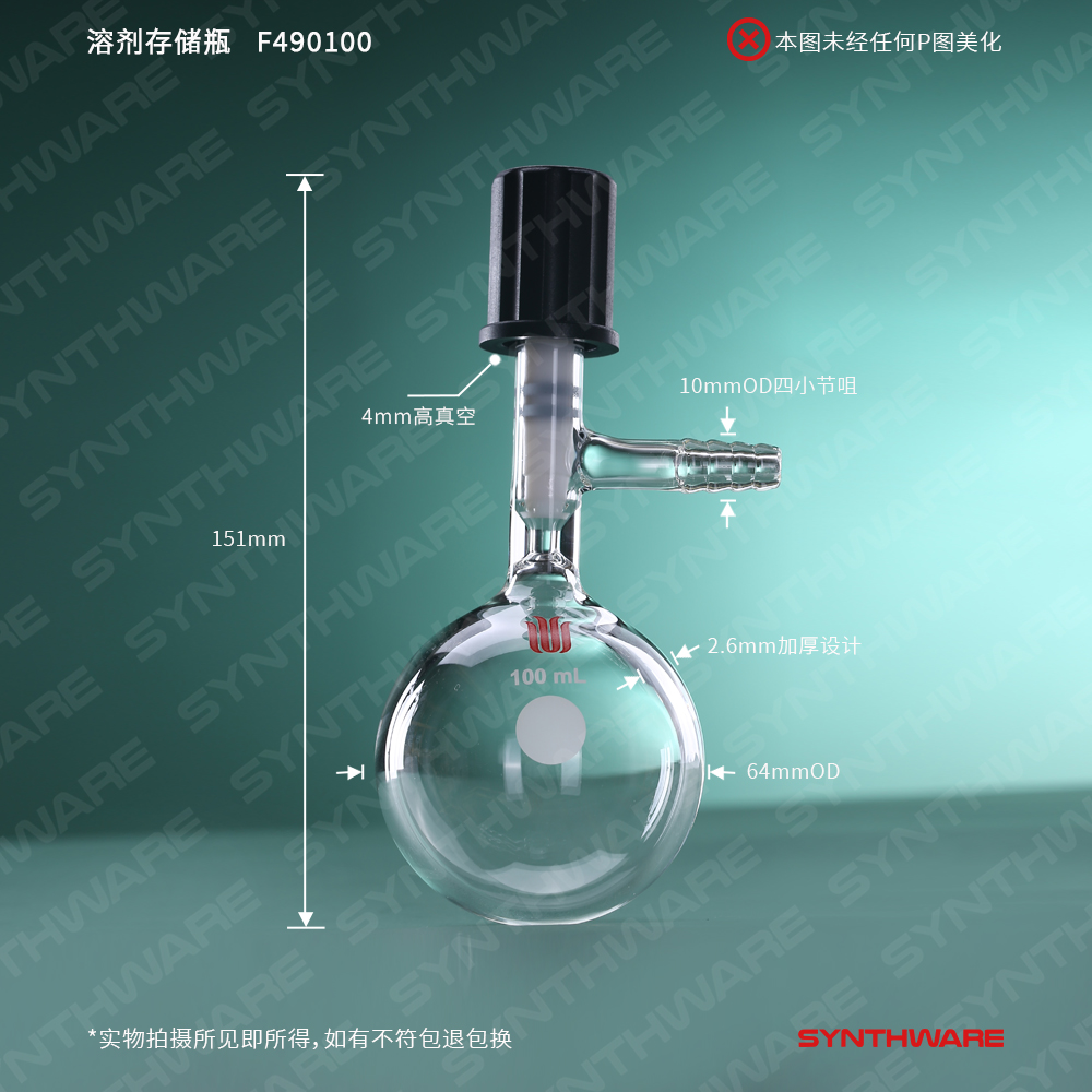 溶剂存储瓶 > 球型溶剂存储瓶 > 高真空节门-圆球溶剂存储瓶 > SYNTHWARE > 溶剂存储瓶,4mm高真空阀,100ml F490100