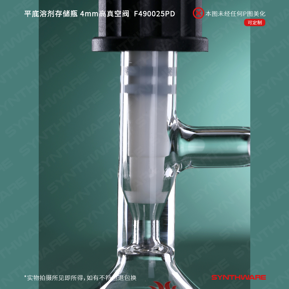 溶剂存储瓶 > 球型溶剂存储瓶 > 高真空节门-平底球溶剂存储瓶 > SYNTHWARE > 平底溶剂存储瓶,4mm高真空阀,25ml F490025PD