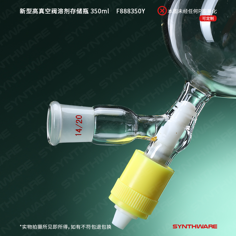 新型高真空阀溶剂存储瓶,容量:350ml,侧口:14/20 F888350Y
