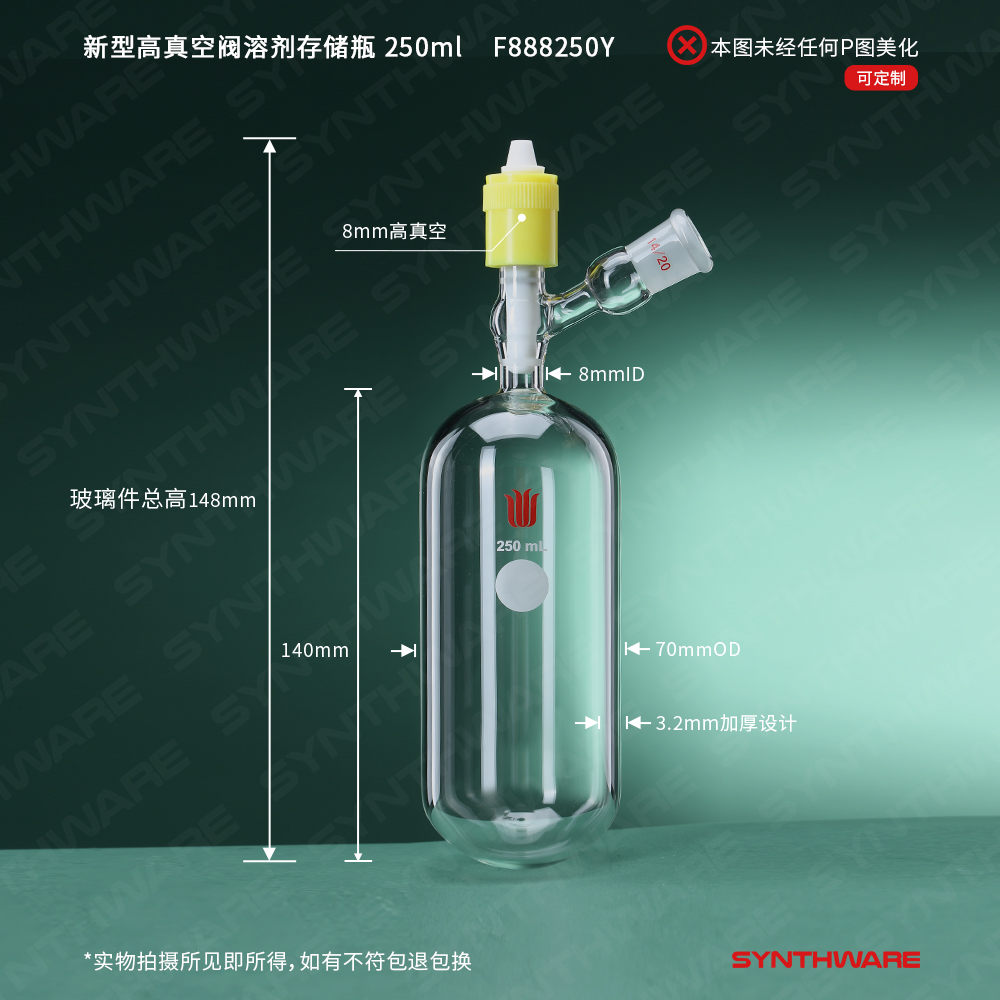 新型高真空阀溶剂存储瓶,容量:250ml,侧口:14/20 F888250Y