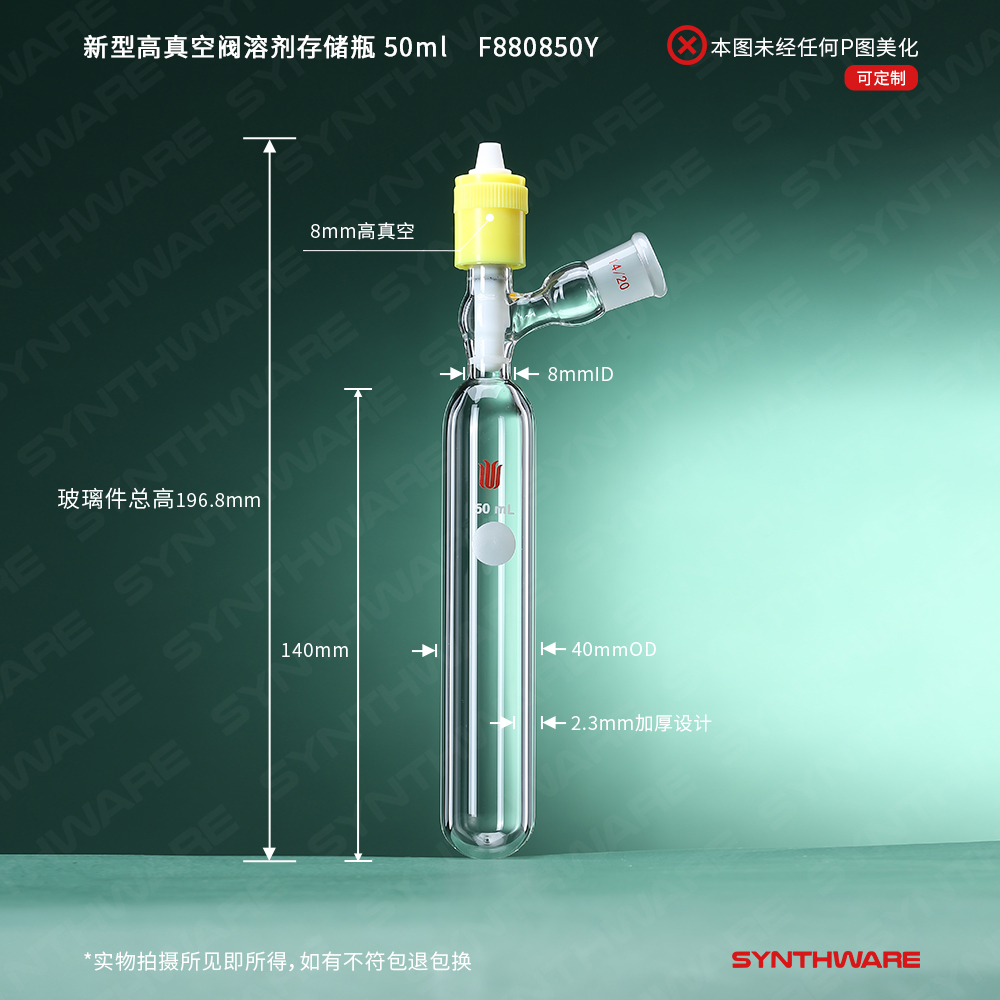 新型高真空阀溶剂存储瓶,容量:50ml,侧口:14/20 F880850Y