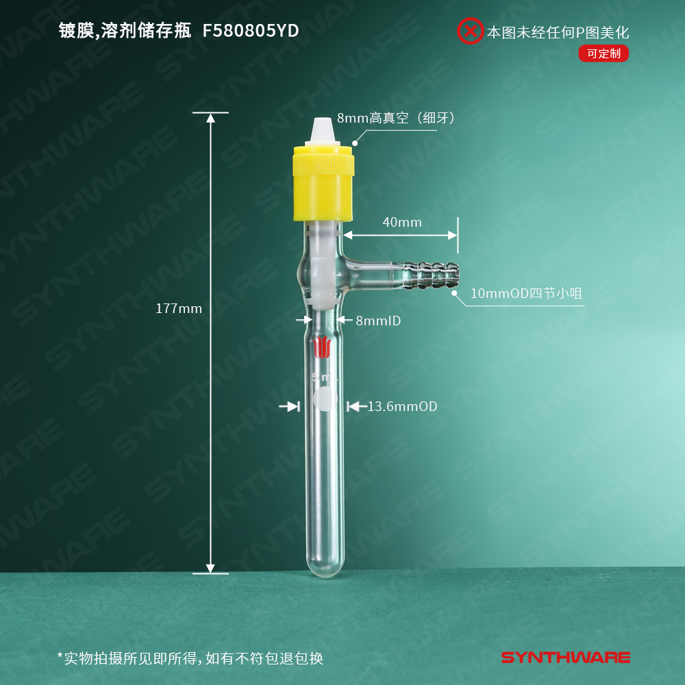 溶剂存储瓶 > 直管型溶剂存储瓶 > 镀膜-新型高真空直管溶剂存储瓶 > SYNTHWARE > 库存售完即止,镀膜,库存售完即止,溶剂储存瓶5ml,新型8mm高真空,管外径×总高13mm*90mm F580805YD