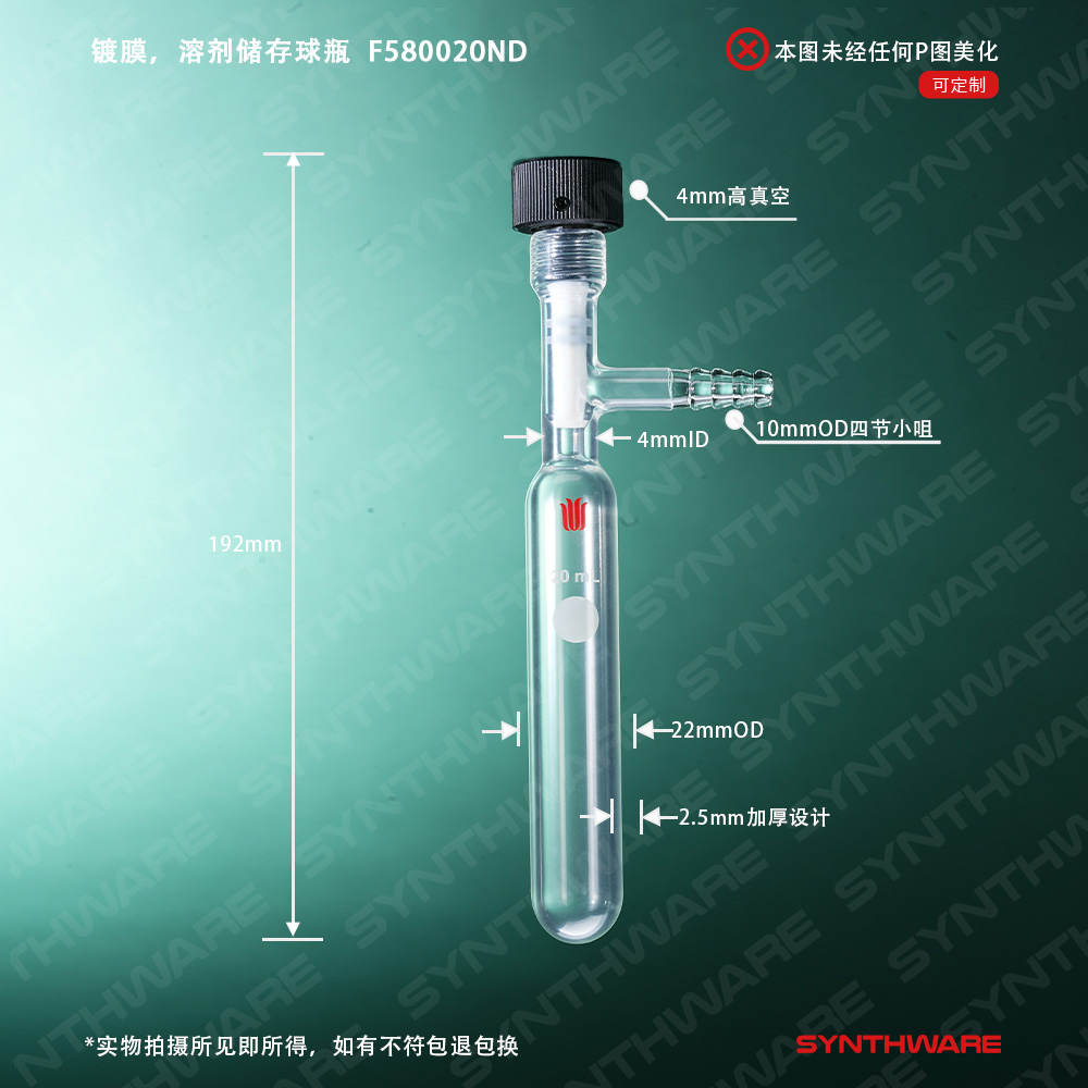 溶剂存储瓶 > 直管型溶剂存储瓶 > 镀膜-内螺纹高真空直管溶剂存储瓶 > SYNTHWARE > 库存售完即止,镀膜,库存售完即止,溶剂存储瓶20ml,7#内螺纹4MM高真空,外径22mm*长度115mm F580020ND