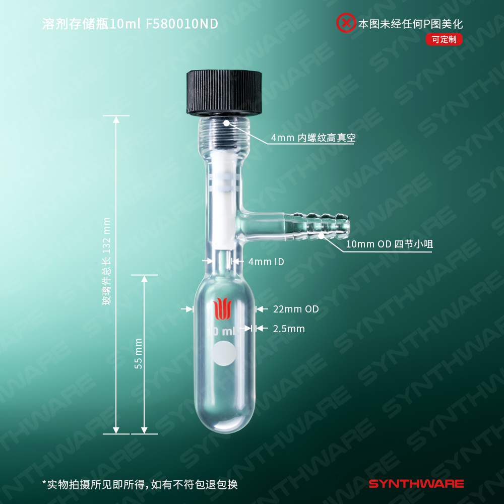 溶剂存储瓶 > 直管型溶剂存储瓶 > 镀膜-内螺纹高真空直管溶剂存储瓶 > SYNTHWARE > 库存售完即止,镀膜,库存售完即止,溶剂存储瓶10ml,7#内螺纹4MM高真空,外径22*长55MM F580010ND
