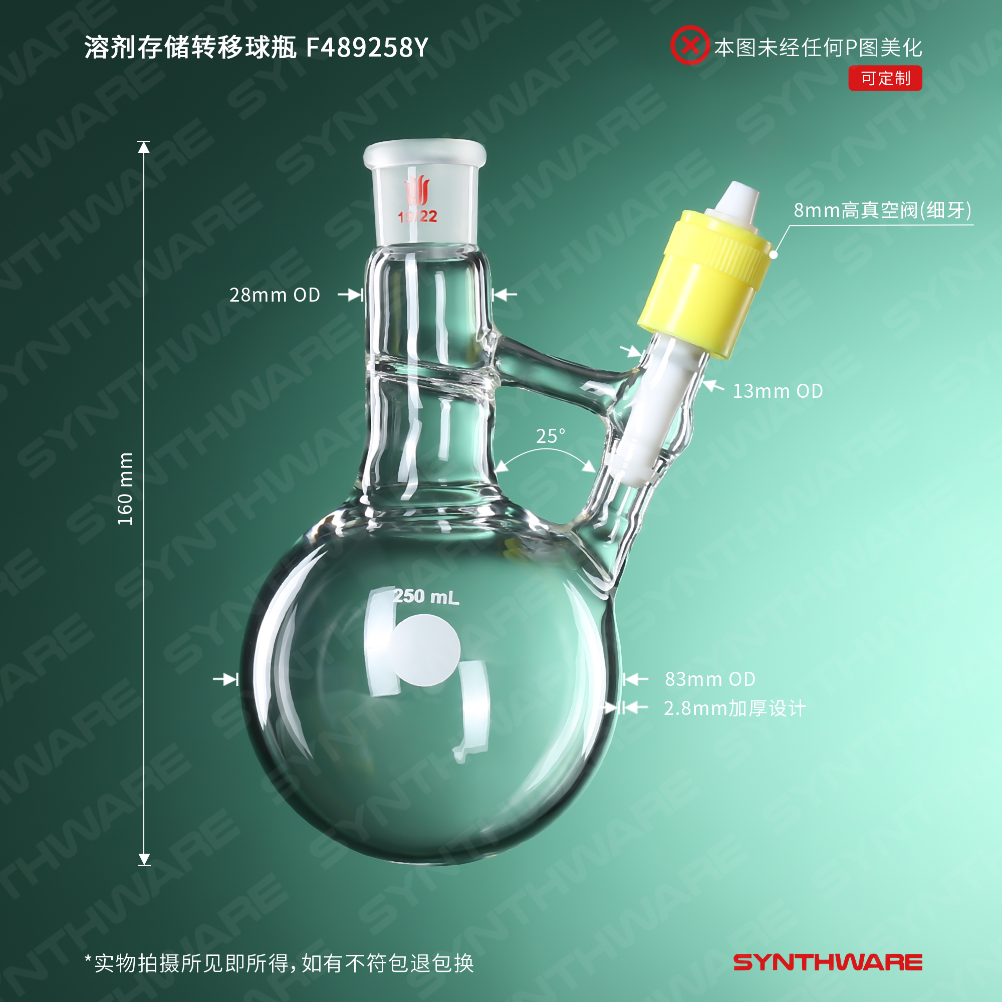 溶剂存储转移球瓶,磨口:19/22,250ml,新型8mm高真空阀 F489258Y