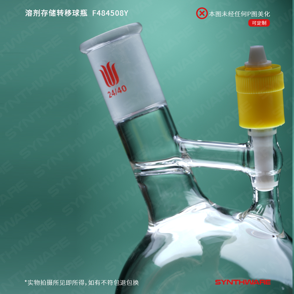 溶剂存储转移球瓶,磨口:24/40,1000ml,新型8mm高真空阀 F4842L8Y