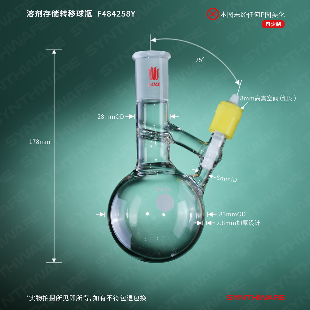 溶剂存储转移球瓶,磨口:24/40,250ml,新型8mm高真空阀 F484258Y