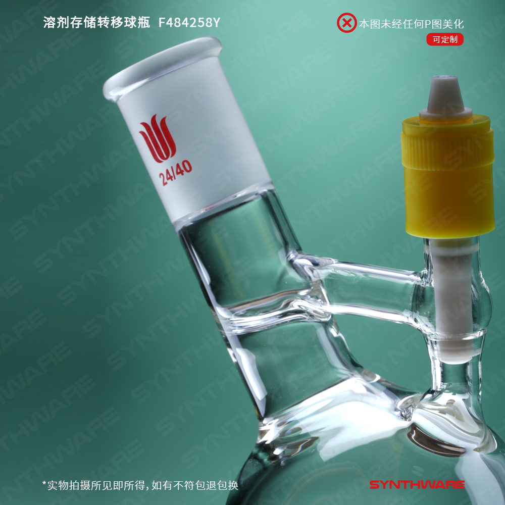 溶剂存储转移球瓶,磨口:24/40,1000ml,新型8mm高真空阀 F4842L8Y