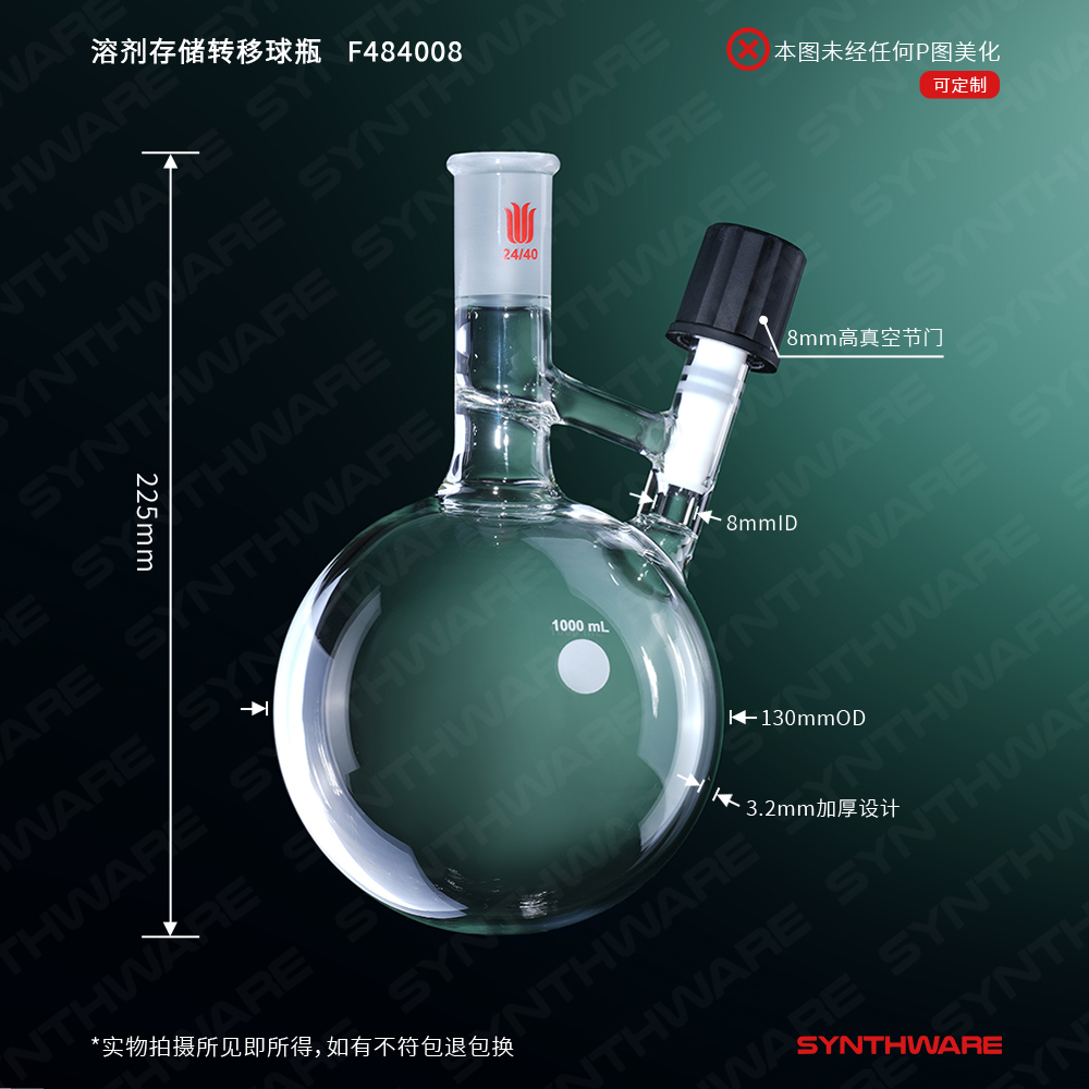 溶剂存储转移球瓶,磨口:24/40,1000ml,8mm高真空阀 F484008