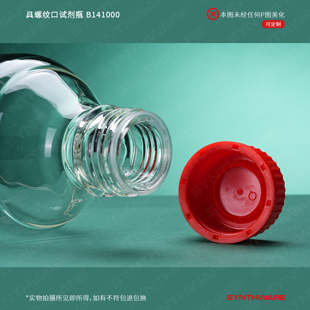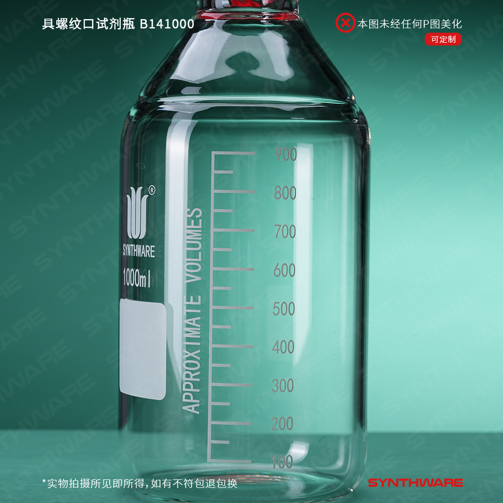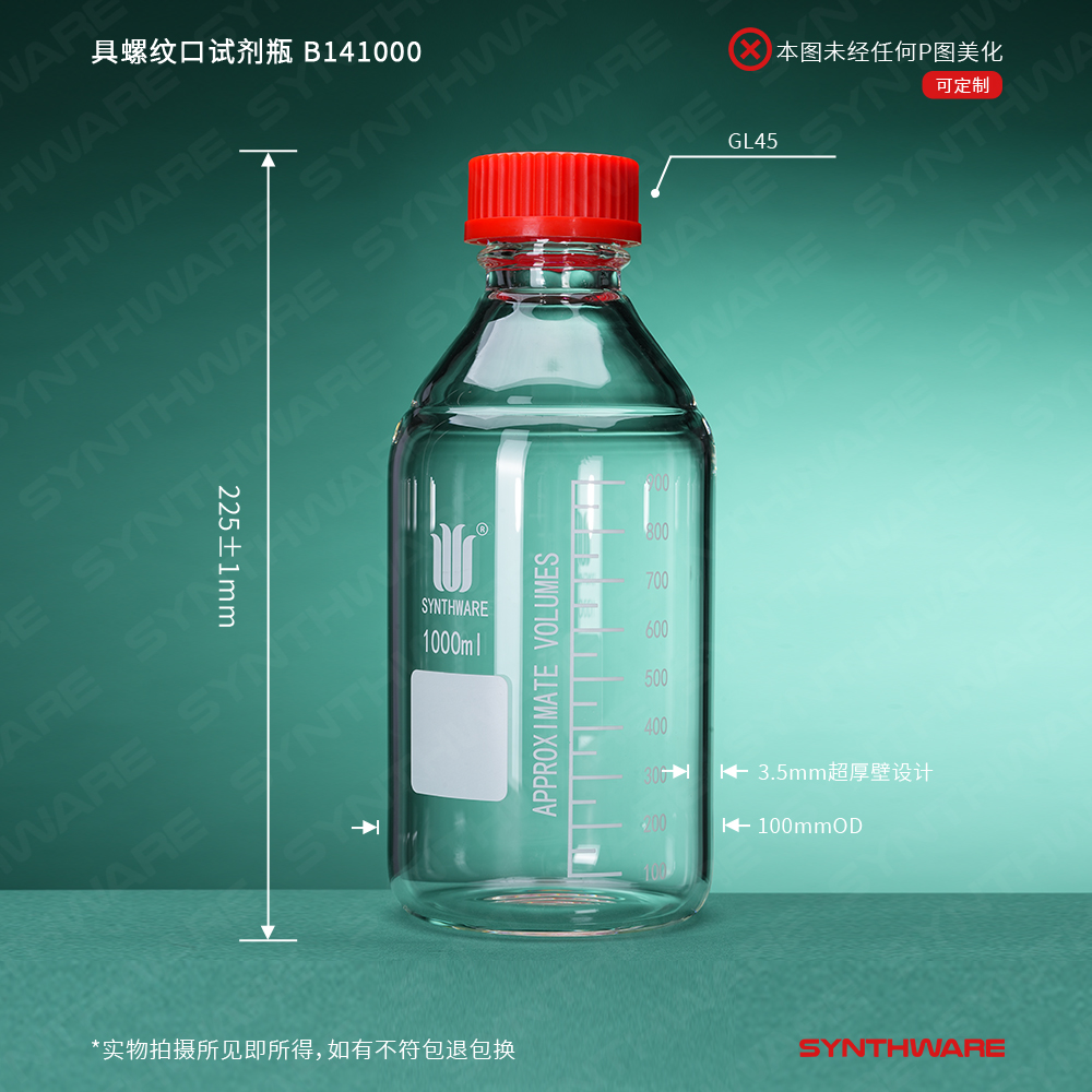 溶剂存储瓶 > 试剂瓶 > 具螺纹口试剂瓶 > SYNTHWARE > 具螺纹口试剂瓶 1000ml GL45,标配红色螺纹盖,含密封圈 B141000