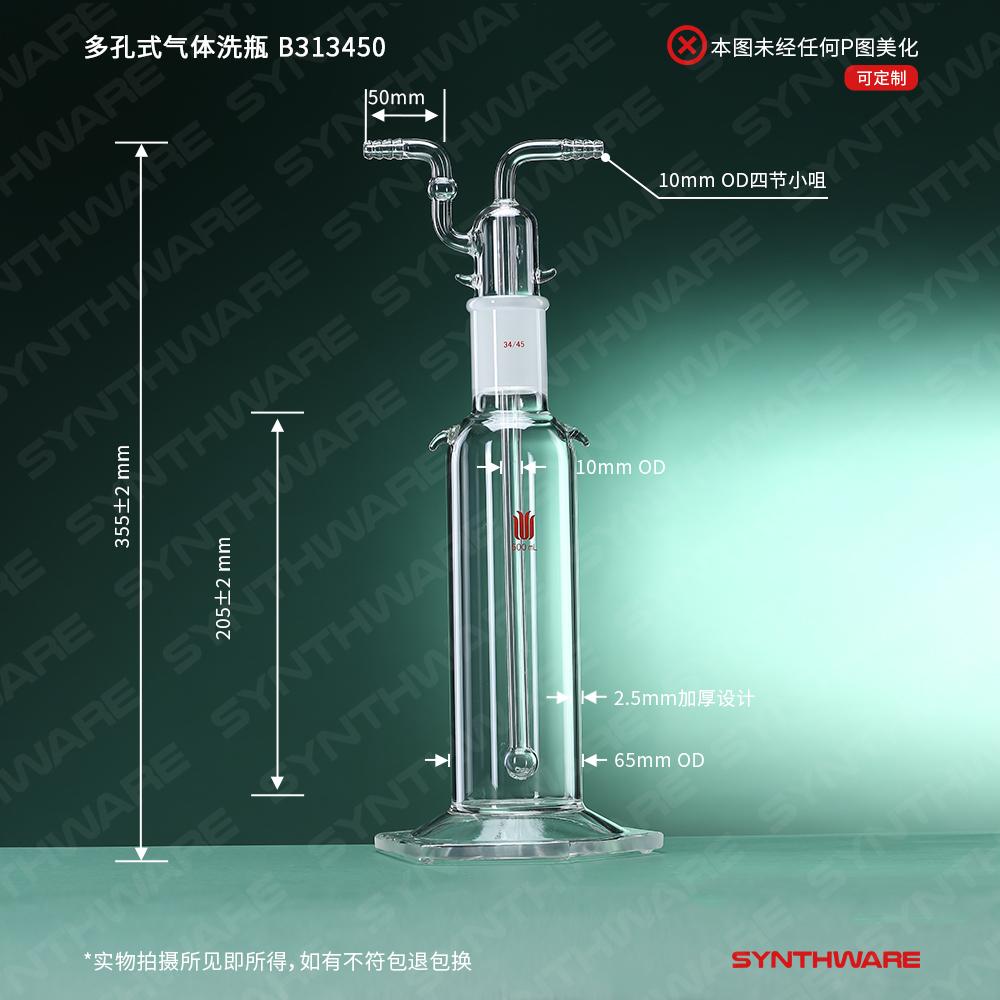 34/45口 500ml,多孔式气体洗瓶 B313450