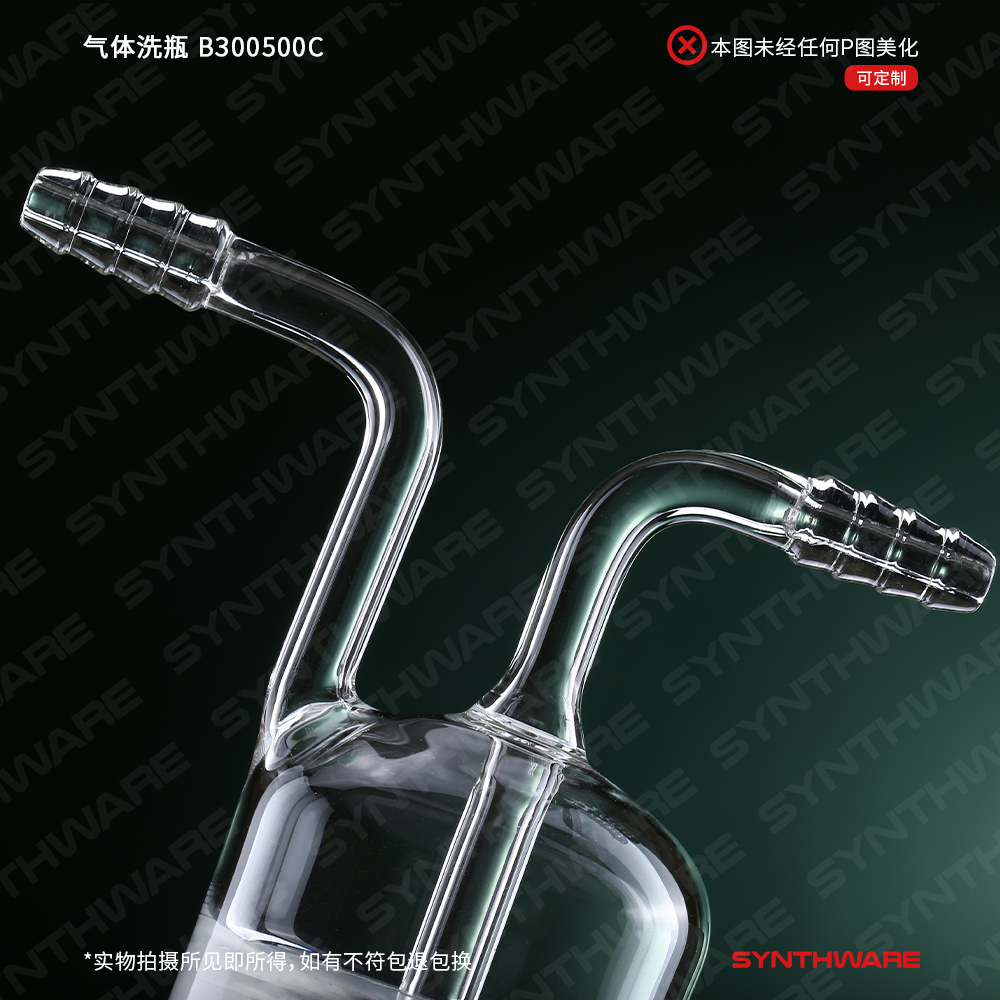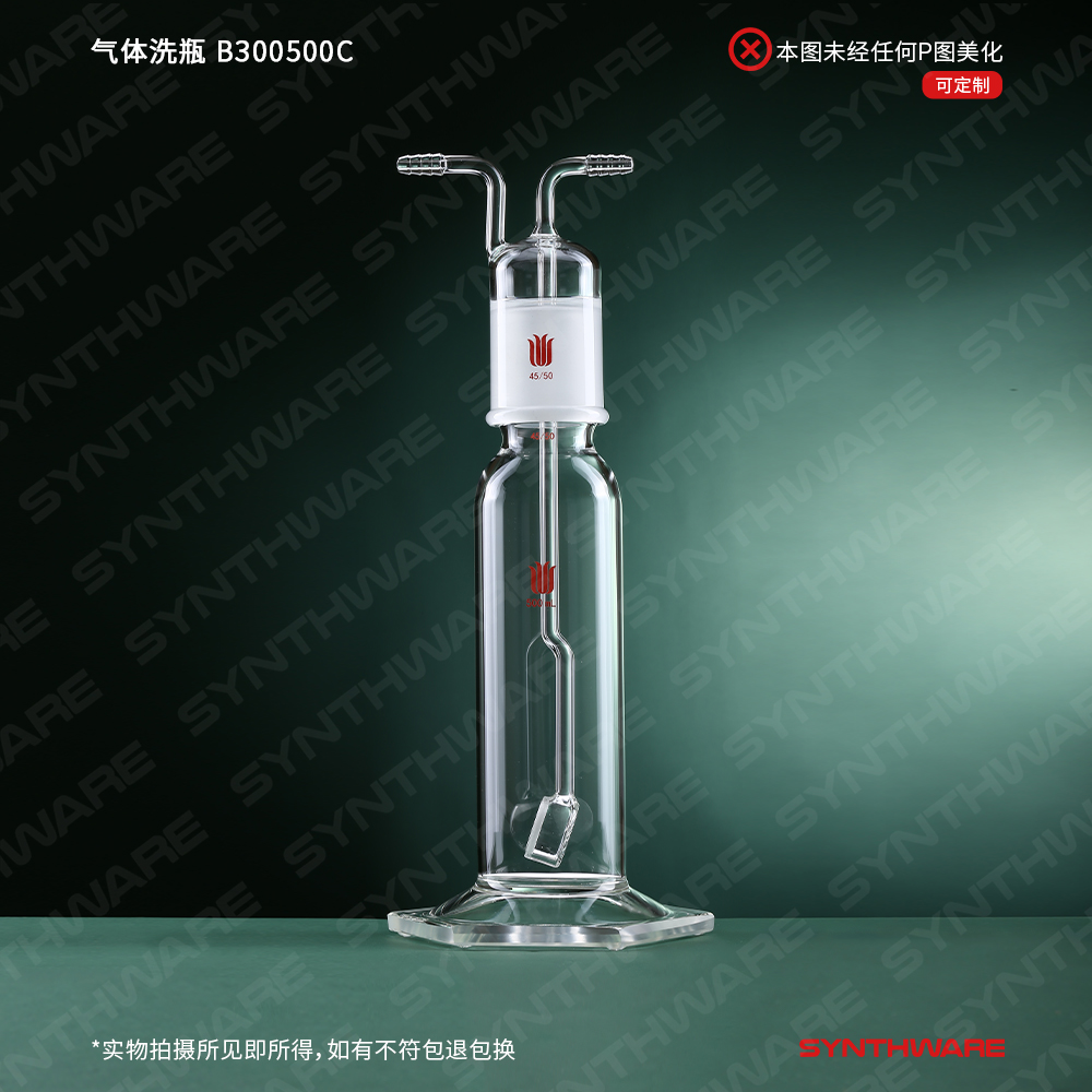 气体洗瓶具45/50 标准磨口和砂板,气体以15°的方向进入吸收液体。用磨口塑料夹固定(需单独购买)。