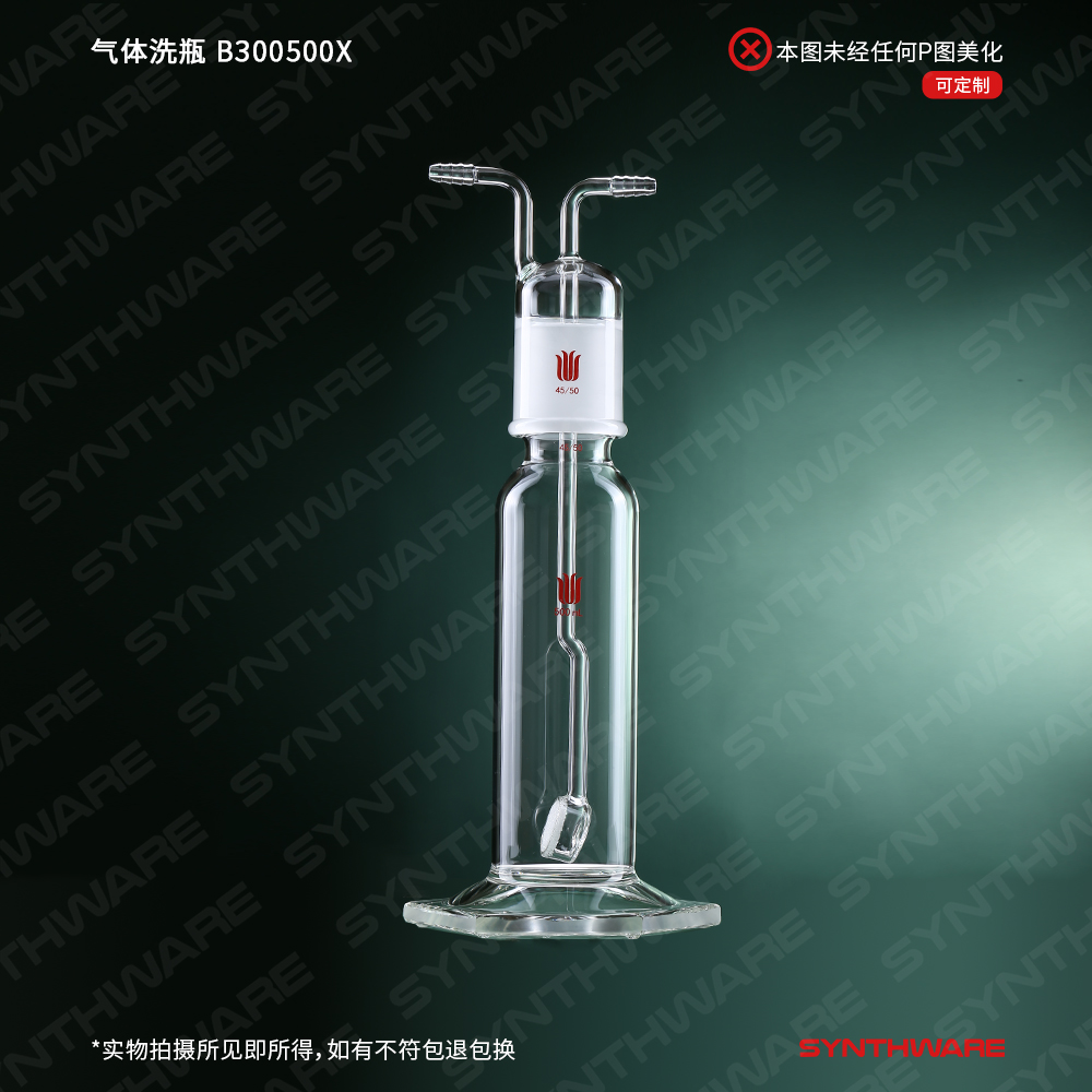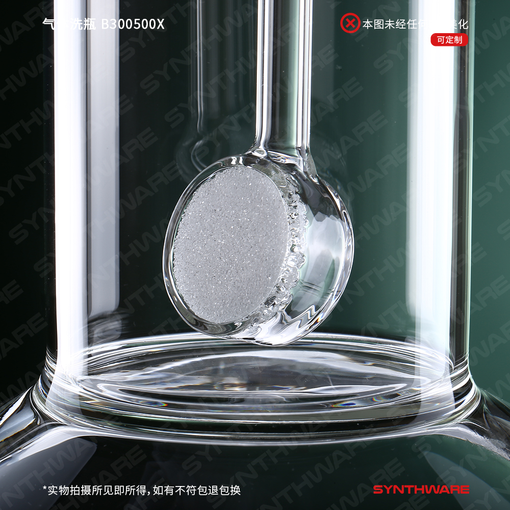 气体洗瓶具45/50 标准磨口和砂板,气体以15°的方向进入吸收液体。用磨口塑料夹固定(需单独购买)。