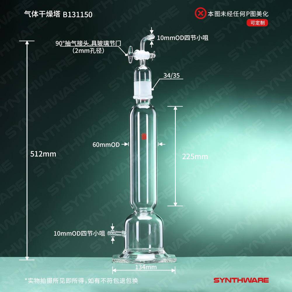 气体干燥塔适用于一些气体需要做干燥吸收水分的器具,常用无水氯化钙和变色硅胶作为固体吸收剂,也可二只以上串联使用效果更佳。