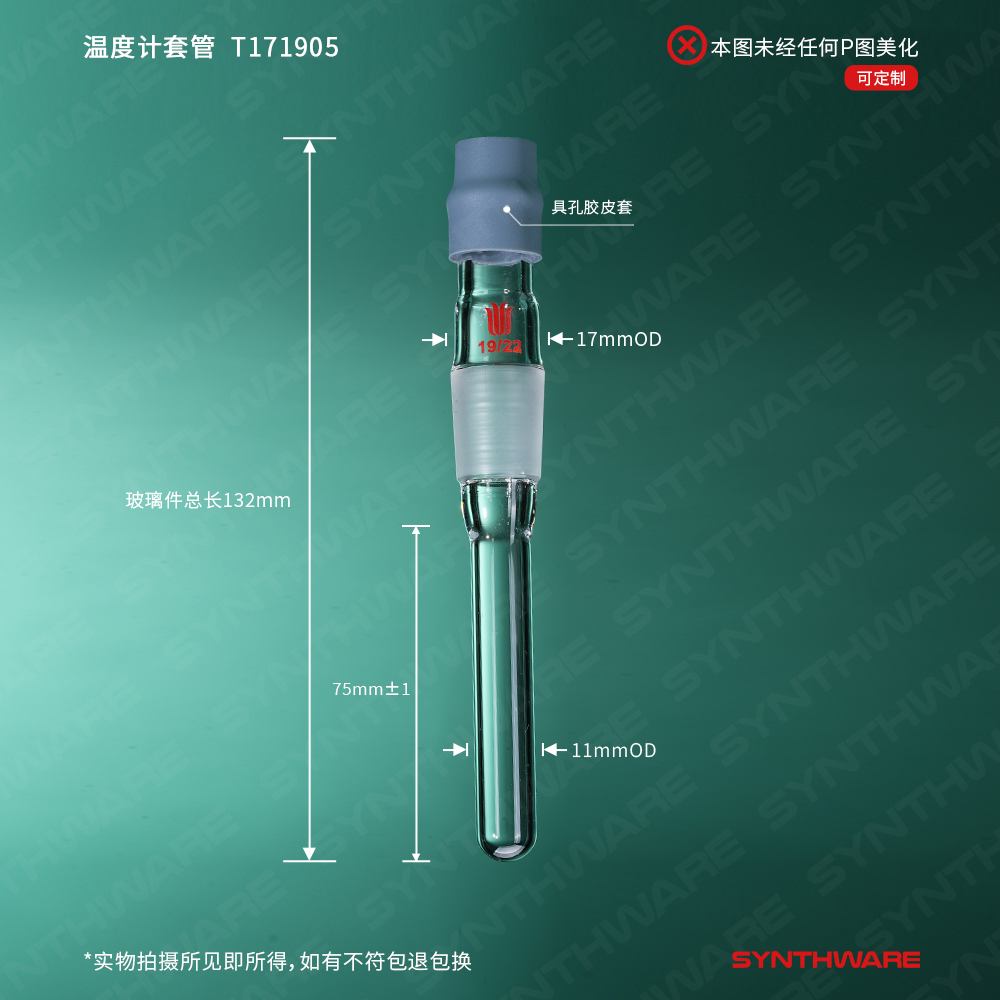 温度计类 > 温度计套管 > 温度计套管(磨口) > SYNTHWARE > 温度计套管,磨口:19/22,匹配250ml球瓶 T171905