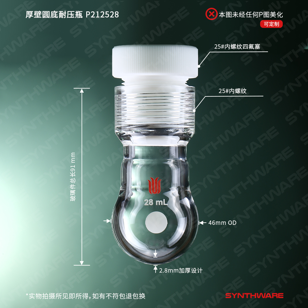 耐压瓶 > 厚壁耐压瓶 > 圆底球厚壁耐压瓶 > SYNTHWARE > 厚壁圆底耐压瓶,容量:28ml,25#内螺纹口 P212528