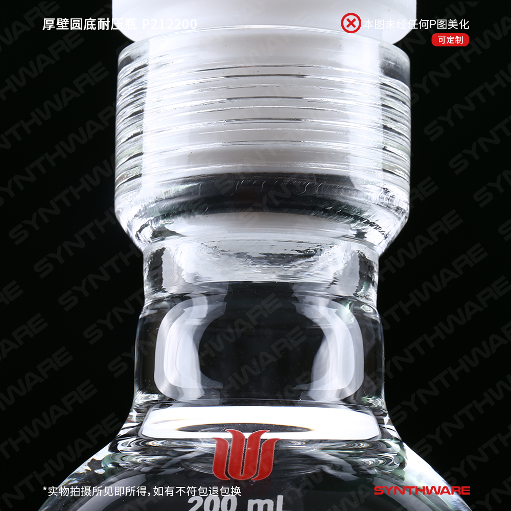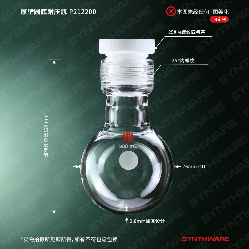 # #25内螺纹厚壁球型耐压瓶,标配有四氟螺纹盖(B100025G)以及四氟包覆O型圈(R212QB)