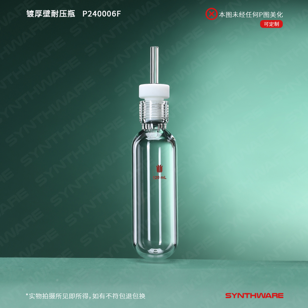 耐压瓶 > 厚壁耐压瓶 > 具导气/真空接口(防腐密封圈)耐压瓶 > SYNTHWARE > 厚壁耐压瓶,具导气/真空接口,四氟全包O型圈,容量:120ml,15# P240006F