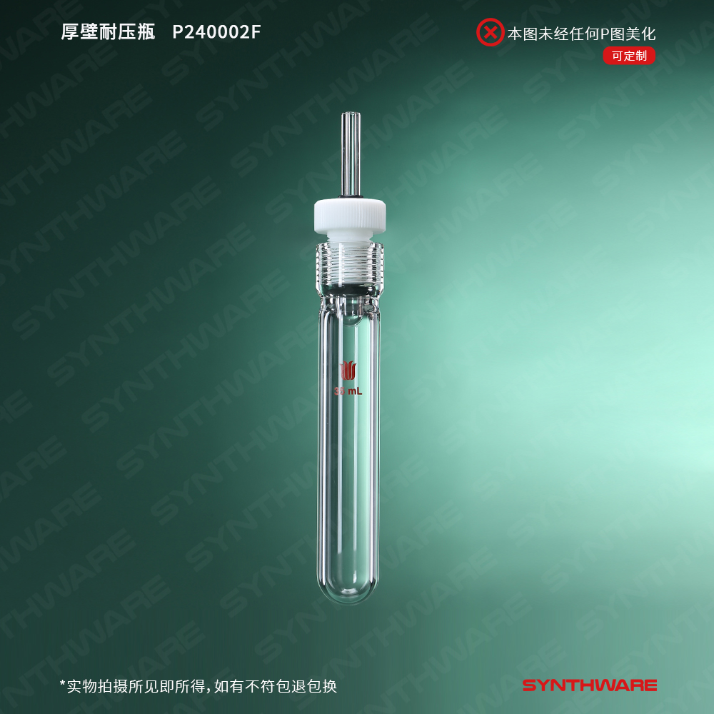 耐压瓶 > 厚壁耐压瓶 > 具导气/真空接口(防腐密封圈)耐压瓶 > SYNTHWARE > 厚壁耐压瓶,具导气/真空接口,四氟全包O型圈,容量:35ml,15# P240002F