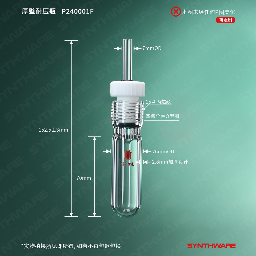 耐压瓶 > 厚壁耐压瓶 > 具导气/真空接口(防腐密封圈)耐压瓶 > SYNTHWARE > 厚壁耐压瓶,具导气/真空接口,四氟全包O型圈,容量:15ml,15# P240001F
