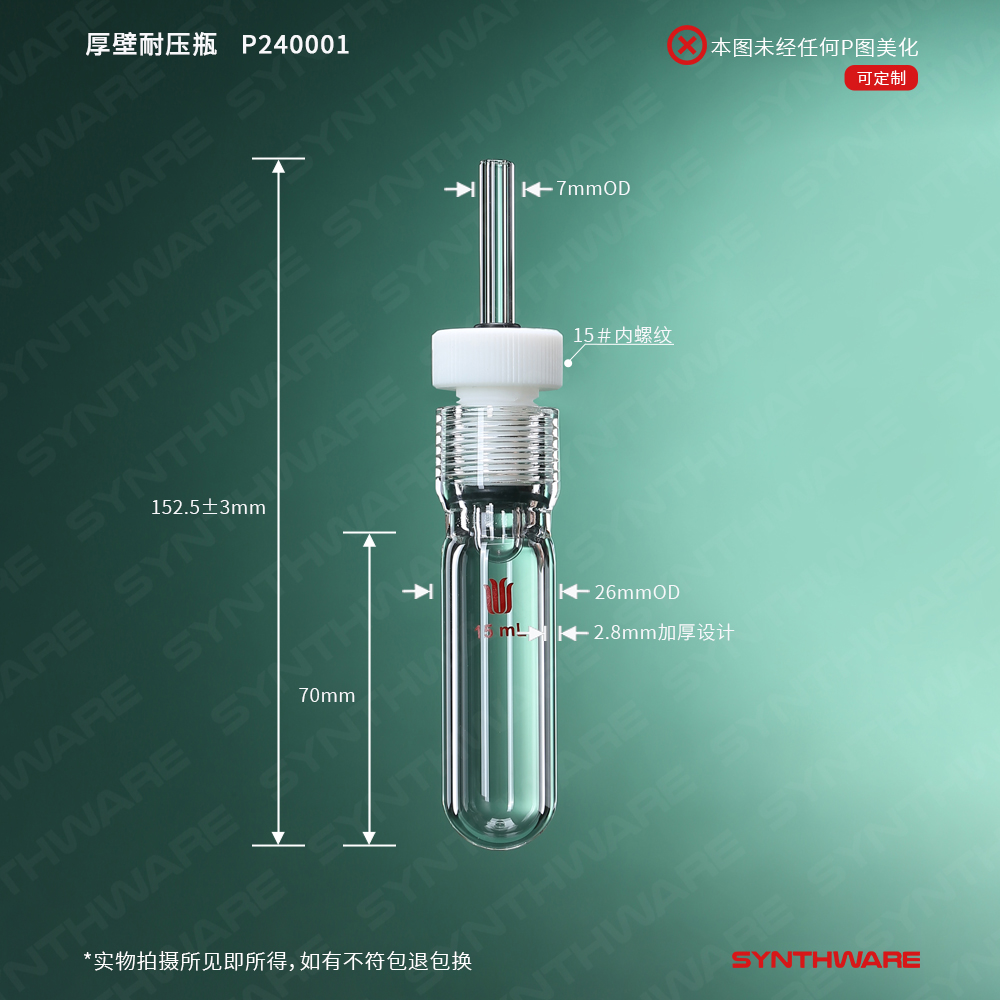 耐压瓶 > 厚壁耐压瓶 > 具导气/真空接口耐压瓶 > SYNTHWARE > 厚壁耐压瓶,具导气/真空接口,容量:15,外径*长度:26*70MM P240001