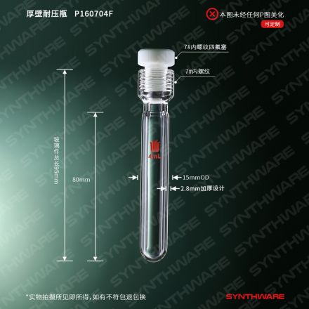 耐压瓶 > 厚壁耐压瓶 > 防腐密封圈(细管)耐压瓶 > SYNTHWARE > 厚壁耐压瓶,四氟全包O型圈,4ml,7#内螺纹,外径*有效长度mm15*80 P160704F
