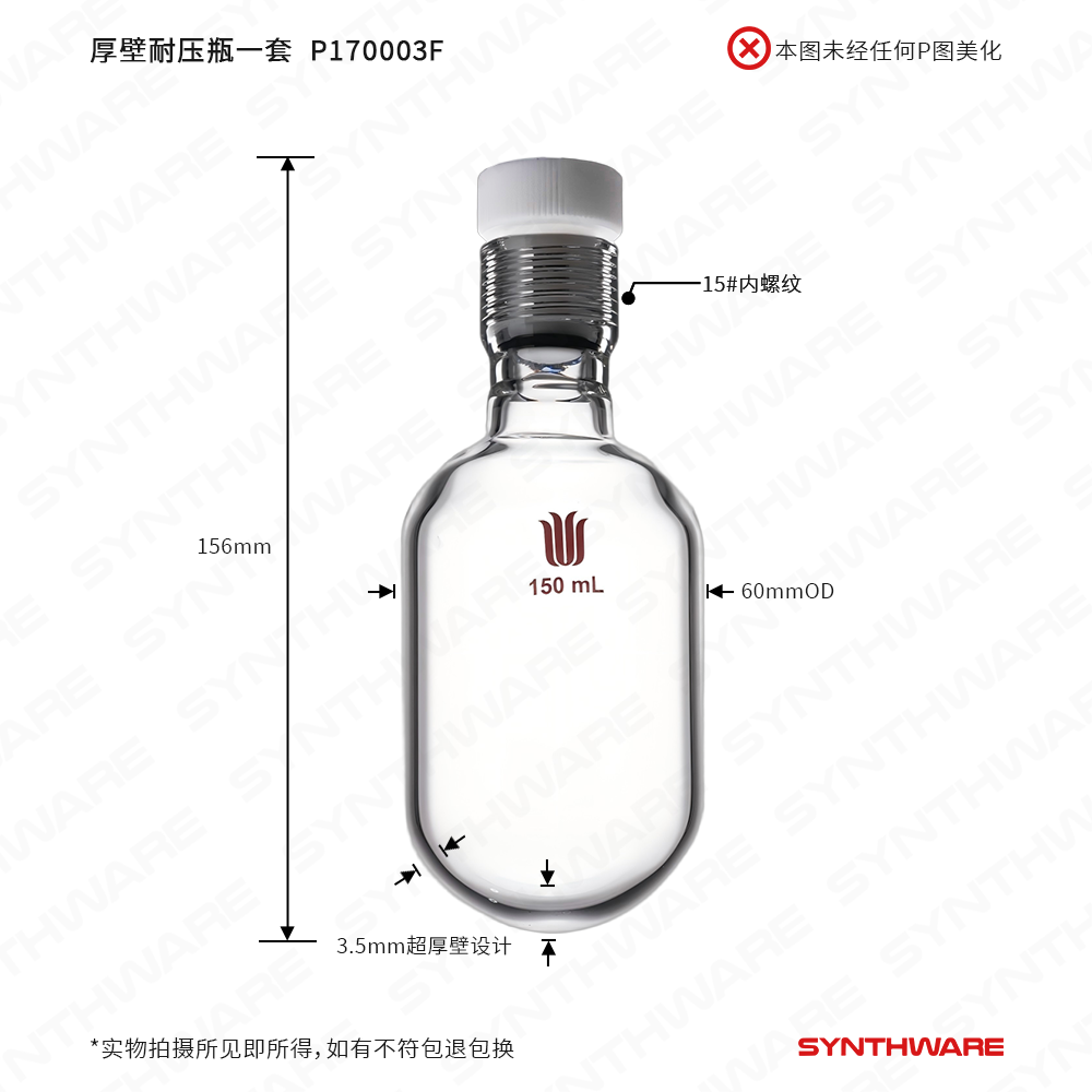 耐压瓶 > 厚壁耐压瓶 > 防腐密封圈(粗管)耐压瓶 > SYNTHWARE > 厚壁耐压瓶一套,四氟全包O型圈,容量:150ml,15# P170003F