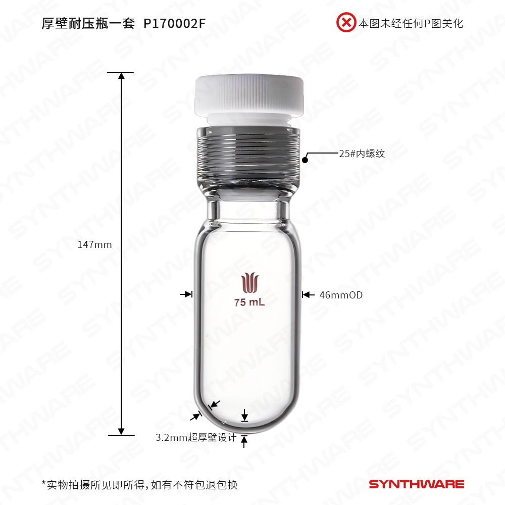 耐压瓶 > 厚壁耐压瓶 > 防腐密封圈(粗管)耐压瓶 > SYNTHWARE > 厚壁耐压瓶一套,四氟全包O型圈,容量:75ml,25# P170002F
