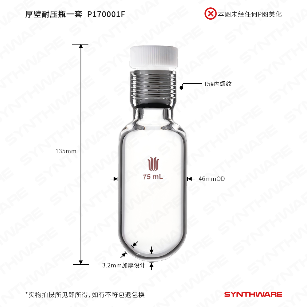 耐压瓶 > 厚壁耐压瓶 > 防腐密封圈(粗管)耐压瓶 > SYNTHWARE > 厚壁耐压瓶一套,四氟全包O型圈,容量:75ml,15# P170001F