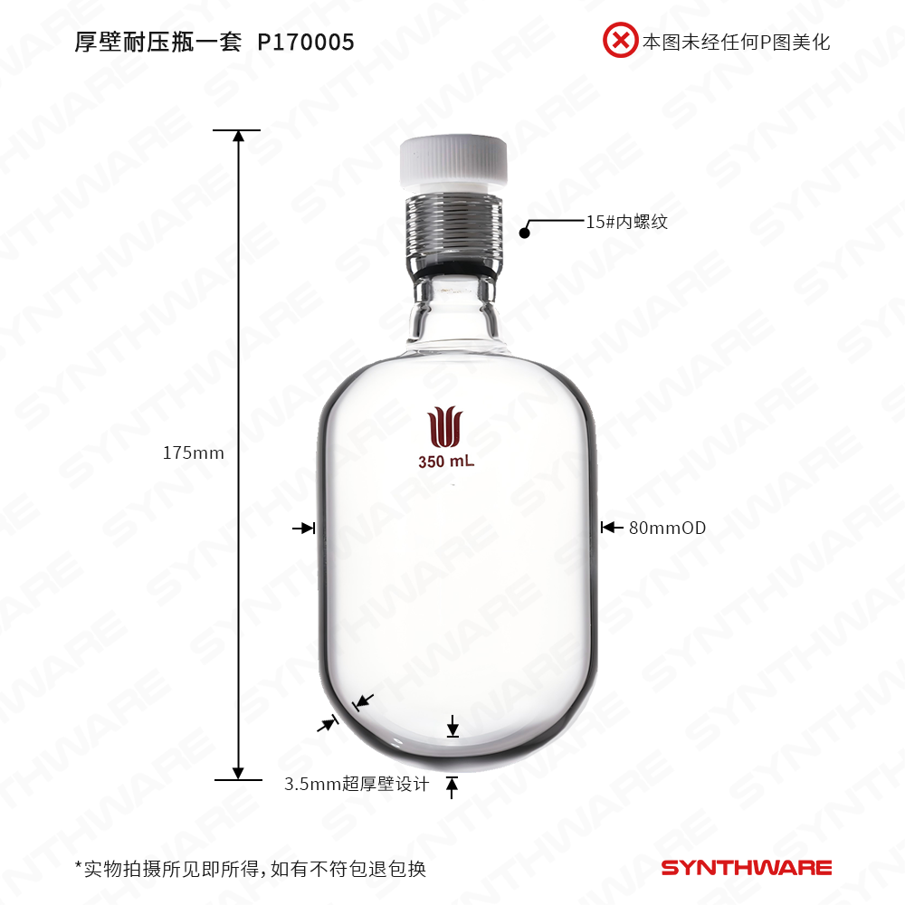 耐压瓶 > 厚壁耐压瓶 > 粗管厚壁耐压瓶 > SYNTHWARE > 厚壁耐压瓶一套,350ml,15# P170005