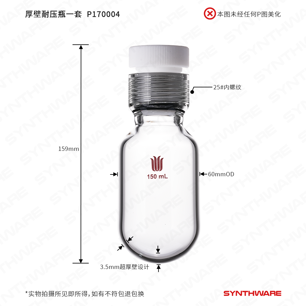 耐压瓶 > 厚壁耐压瓶 > 粗管厚壁耐压瓶 > SYNTHWARE > 厚壁耐压瓶一套,150ml,25# P170004