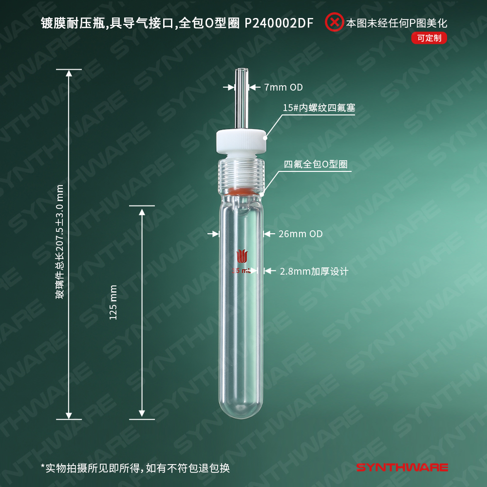 耐压瓶 > 厚壁耐压瓶 > 镀膜-具导气/真空接口(防腐密封圈)耐压瓶 > SYNTHWARE > 库存售完即止,镀膜耐压瓶,具导气接口,全包O型圈,容量35ml,15# P240002DF
